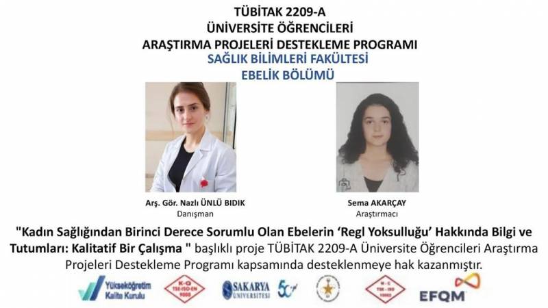 TÜBİTAK Bilim İnsanı Destek Programları Başkanlığı tarafından yürütülen “2209-A Üniversite Öğrencileri Araştırma Projeleri Destekleme Programı” 2023/1 dönemi kapsamında yapılan başvuruların destek sonuçları açıklandı. Sakarya Üniversitesi Sağlık Bilimleri Fakültesi  Ebelik bölümüzden 2 proje TÜBİTAK tarafından desteklenmeye hak kazandı.